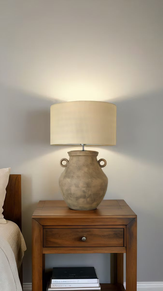 THE BROWN CERAMIC LAMP WITH HESSIAN SHADE BLENDS EARTHY TONES WITH NATURAL TEXTURES FOR A WARM, RUSTIC CHARM. FEATURING A RICH BROWN CERAMIC BASE AND A TEXTURED HESSIAN SHADE, IT CASTS A SOFT, INVITING GLOW. PERFECT FOR LIVING ROOMS, BEDROOMS, OR COZY CORNERS, THIS LAMP ADDS ORGANIC ELEGANCE TO ANY SPACE.