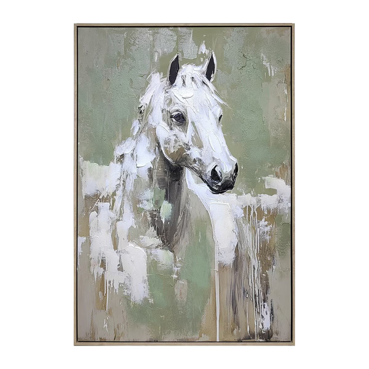 STRIKING AND ELEGANT, THIS FRAMED CANVAS FEATURES A SCULPTURAL HORSE FORM THAT EVOKES STRENGTH AND GRACE. WITH A MUTED, NEUTRAL PALETTE AND ARTISTIC TEXTURE, IT MAKES A POWERFUL STATEMENT WHILE BLENDING SEAMLESSLY INTO MODERN, RUSTIC, OR CLASSIC INTERIORS. IDEAL FOR ADDING CHARACTER AND CALM TO YOUR WALL SPACE.